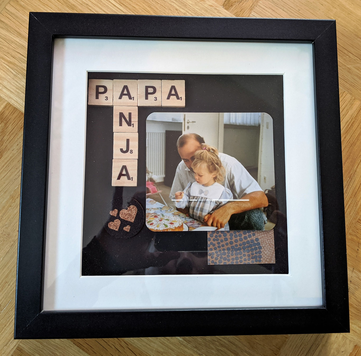 Letztes Jahr wollte ich meinem Vater mal wieder etwas Selbstgemachtes zum Geburtstag schenken. Zwar hatte ich schon etwas gekauft, aber irgendwie war es mir diesmal zu unpersönlich. Natürlich hatte ich mich relativ spät dazu entschieden und es musste schnell gehen. Zufällig habe ich im Keller immer ein paar Bilderrahmen auf Vorrat.